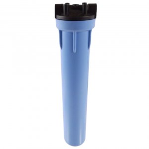 - Gehäuse in transparentem Styrol-Acrylnitril (SAN) mit blauer Kappe, zur Kontrolle des Durchfluss und der Filterkartusche bzw. Filterkerze auf Verschmutzung